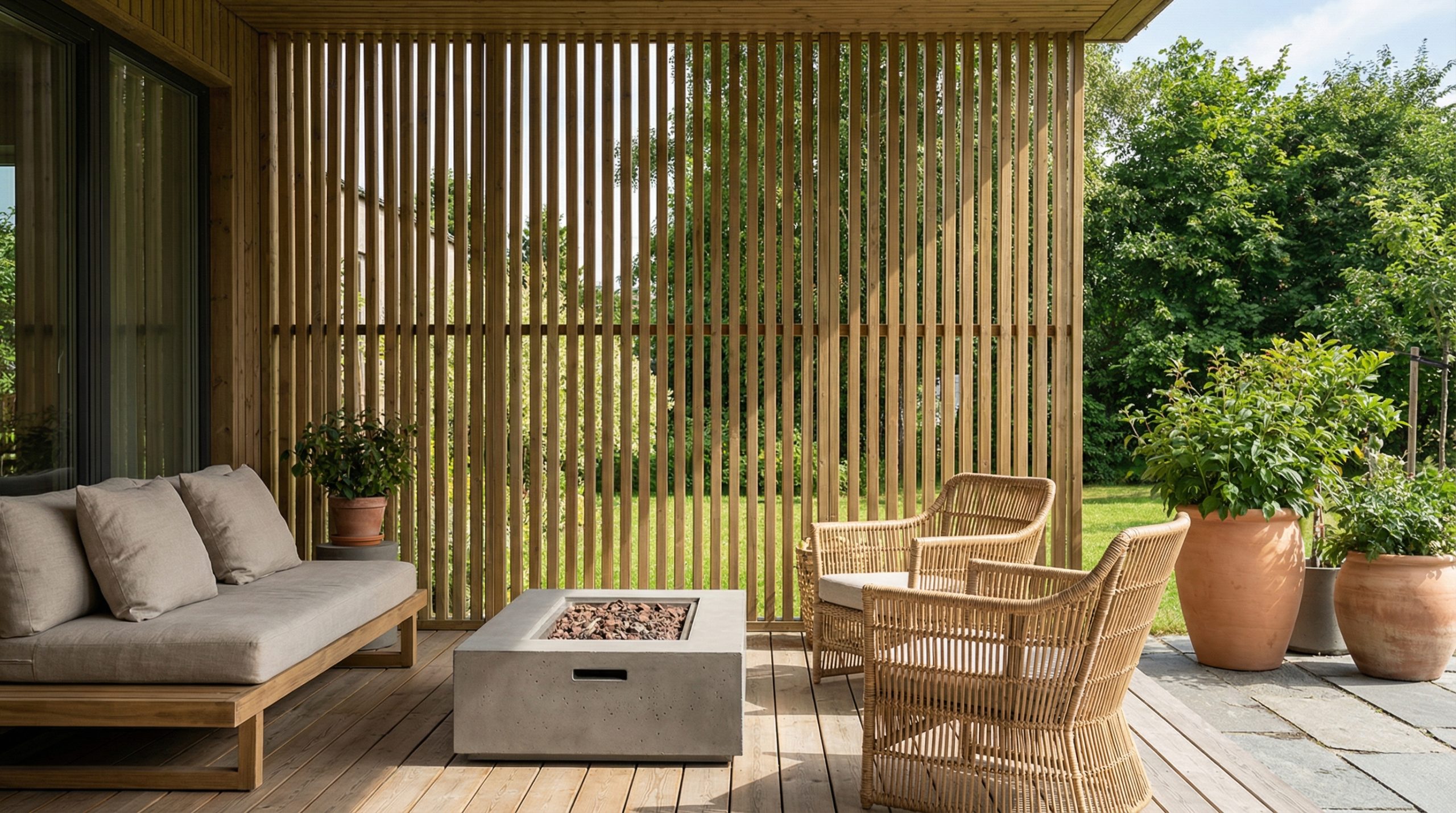 If you want to preserve a feeling of light and openness, a wider gap can be the better choice. This is often a good fit when the slat wall should soften the edge of the patio rather than close it off completely.